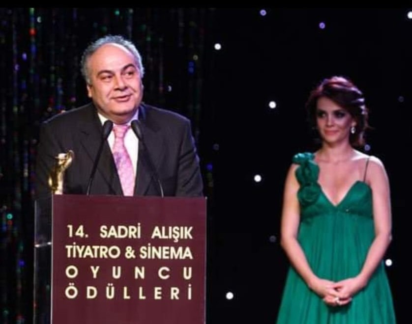 Aldım. 2008-2009 sezonunda da Ahmet Leventoğlu’nun tiyatro stüdyosunda oynuyordum. Özgür Yalım’ın yönettiği ‘Nehrin Solgun Yüzü’ oyununda gardiyan rolündeydim. Gerilim drama türünde Londra’da geçen enteresan bir oyundu. Oyunda toplasan on cümlem ya var ya yoktu. Ama oyunun büyük bir kısmı açık görüş cezaevinde geçiyordu. Hep arkadaydım, hep durandım. Jüri onu değerlendirmiş olmalı Sadri Alışık Jürisinden en iyi yardımcı erkek oyuncu ödülünü aldım. İlk komediden aday oldum ama dramdan ödül aldım.