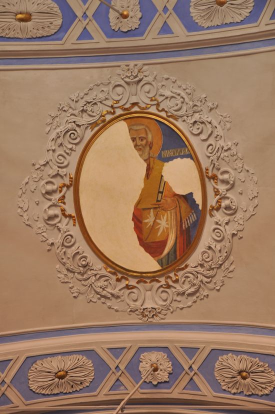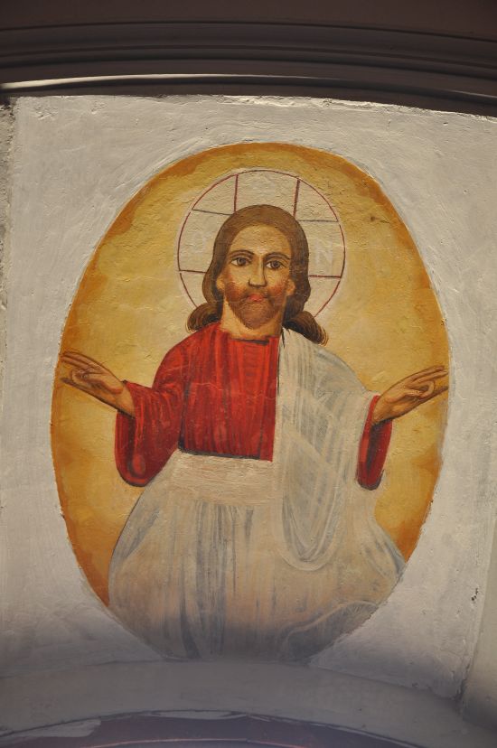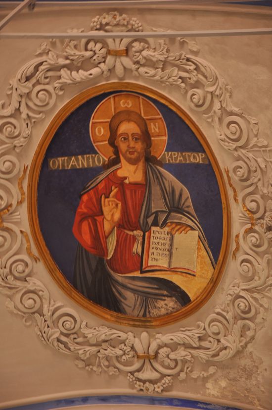 Ressam İ. Sitaras’ın betimlediği freskler son yapılan restorasyon projesiyle açığa çıkarılmıştır. Kötü bir restorasyonla görünür kılınan freskler arasında İsa resimleri günümüze kadar gelmeyi başarmıştır. Özellikle orta nefte bulunan İsa tüm kiliselerde görülebilecek Pantakrator pozundadır. Elindeki kitapla, “tüm evrenin, dünyanın efendisi” anlamındaki “pantakrator” yazısı ve diğer eliyle yaptığı teslis işareti ile tanrısal vasfına gönderme yapmaktadır.