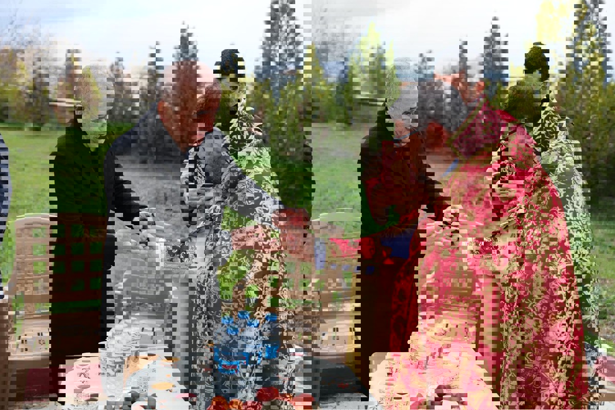 Ayin daha sonra mezarlık başında, yaşamını yitirenler için edilen Hokehankisd dualarının okunmasıyla son buldu. Dua sonrası Tabaşyan, hazırlanan sevgi sofrasında yumurta tokuşturarak, “Kristos Haryavi Merelots. Orhnail e Harutyunın Kristosi - İsa Dirildi. Kutlu Olsun İsa Mesih’in Dirilşi” sözleriyle Ermeni toplumununu Zadig’ini kutladı.