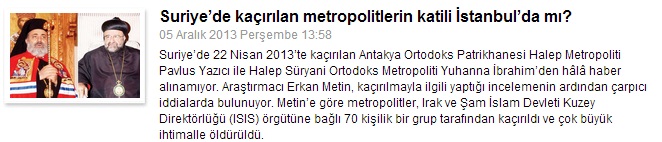 Polis, Suriye’de kaçırılan metropolitleri sormamış bile
