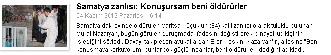 Raporda, “Kendisinde ceza sorumluluğunu etkileyecek veya ortadan kaldıracak mahiyet ve derecede herhangi bir akıl hastalığı veya akıl zayıflığı tespit edilmediği, dava dosyasının tetkikinden de suç tarihinde suçunu takip eden günlerde de herhangi bir akli arıza içinde olduğuna delalet edecek tıbbi bulgu ve belgeye rastlanmadığı; bu duruma göre Bedros oğlu 1975 doğumlu Murat Nazaryan’ın 28 Aralık 2012 tarihinde sanığı bulunduğu, canavarca hisle veya eziyet çektirerek öldürme suçuna karşı ceza sorumluluğunun tam olduğu kanaat ve mütaalamızı bildirir gözlem raporudur” ifadeleri yer aldı.
