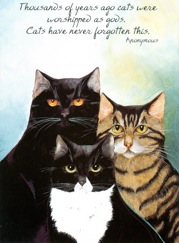 “Kedicik niye delirdi?” sorunuzun tek ve basit cevabı çoğunlukla “Yemek, hemen şimdi” olunca ve tabağına mama koyduktan sonra birden ilişkiniz sevimliliğe dönüşünce var oluş amacınızı anlıyorsunuz: “Ey insan, ey evinde kediyle yaşayan insan, sen kediyi beslemek ve o istediği zaman onunla oynamak için yaratıldın!” Sonuçta bir zamanlar kendilerine tapınılmış hayvanlar olarak tarihin o döneminden hiç çıkamamışlar hissini sürekli uyandırmaktalar.