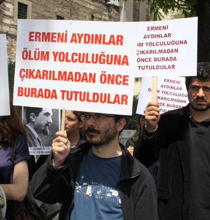 Türk-İslam Eserleri Müzesi önünde toplanan insan hakları savunucuları, yere '1915 soykırımdır. Soykırım insanlık suçudur' yazılı pankart ile üzerinde Ermeni aydınların isimlerinin yazılı olduğu karanfiller bıraktı. Ermeni aydınların fotoğrafları ve 'Ermeni aydınlar ölüm yolculuğuna çıkarılmadan önce burada tutuldular', 'Türk İslam Eserleri Müzesi=1915'te Cezaevi' dövizleri taşındı.