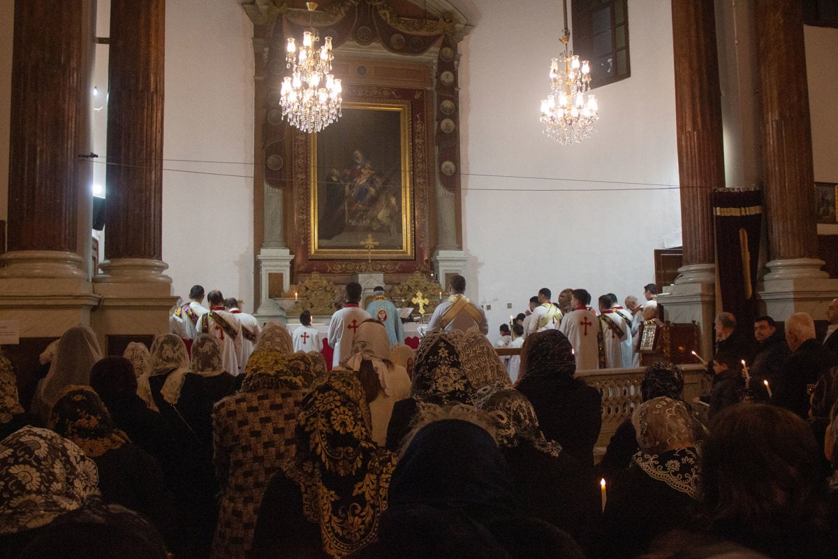 Ayini yöneten ruhani, İsa Mesih’i temsilen elinde taşıdığı haç ile dualar etti. Daha sonra ruhani taşıdığı haç ile şemmaslar (sunakta görevli öğrenciler) eşliğinde kilisenin içerisinde ilahiler söyleyerek halkın arasından geçti ve İsa Mesih’in doğuşunu müjdeledi. Kilisedeki Süryaniler de zılgıt ve ilahiler eşliğinde coşkularını yansıttı ve haçı öptü.