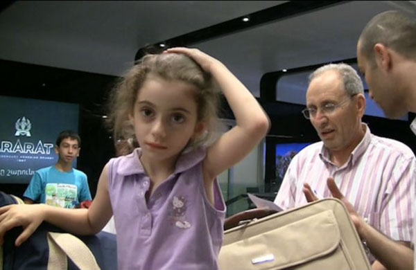 Bir başka Suriyeli Ermeni, Hovhannes Mubaet, Yerevan’a geldikten birkaç gün sonra Diaspora Bakanlığı’na gitti. Kendisiyle Bakanlık’ta tesadüfen karşılaştık. Hovhannes ve on yaşındaki kızı Anna Maria başvuru belgesi doldurmaya geldiler. Dört kişilik aile, Halep’ten Yerevan’a “ateşlerden geçerek” ulaştı. Suriye’deki savaş bitene kadar Ermenistan’da yaşamayı planlıyorlar. Hovhannes müzisyen. Halep’teki Amerikan Koleji’nde keman öğretmeni ve aynı zamanda Gomidas Yaylı Sazlar Topluluğu’nun da yöneticisi. “Halep’in tek müzik okulunun müdürüyüm, ancak Yerevan’da işsizim. Getirdiğimiz parayı da kısa zamanda bitirdik; acilen iş bulmam lazım” diyor.