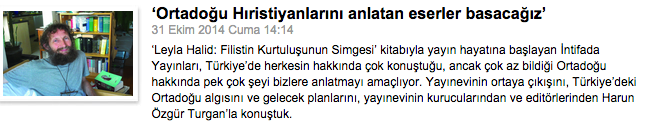 ‘Leyla Halid: Filistin Kurtuluşunun Simgesi’ kitabıyla yayın hayatına başlayan İntifada Yayınları, Türkiye’de hakkında çok konuşulan, ancak çok az bilinen Ortadoğu hakkında şimdiye kadar görmezden gelinenleri anlatmayı amaçlıyor. Yayınevinin kurucularından ve editörlerinden Harun Özgür Turgan’la Emre Can Dağlıoğlu konuştu.