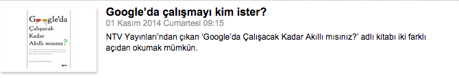 NTV Yayınları’ndan çıkan ‘Google’da Çalışacak Kadar Akıllı mısınız?’, merkeze Google’da yapılan iş görüşmelerini alarak büyük firmaların önderliğinde gelişen, zamanla küçük firmalara da sirayet eden çetrefilli soru türlerini inceliyor. Okurlara iş görüşmelerinde kullanabilecekleri pek çok değerli fikir veriyor. Bürkem Cevher yazdı.