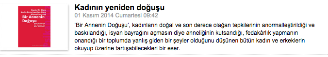 ‘Bir Annenin Doğuşu’, psikiyatrist, pediyatrist ve çocuk psikoloğu ile bir de gazetecinin yazdığı, üç yazarlı bir kitap. Annelerle ve bir miktar da babalarla görüşmeler yapıldığından sık sık deneyimlere yer veriyor; yer yer kahkahadan kırıp geçiriyor. Ezgi Berk yazdı.