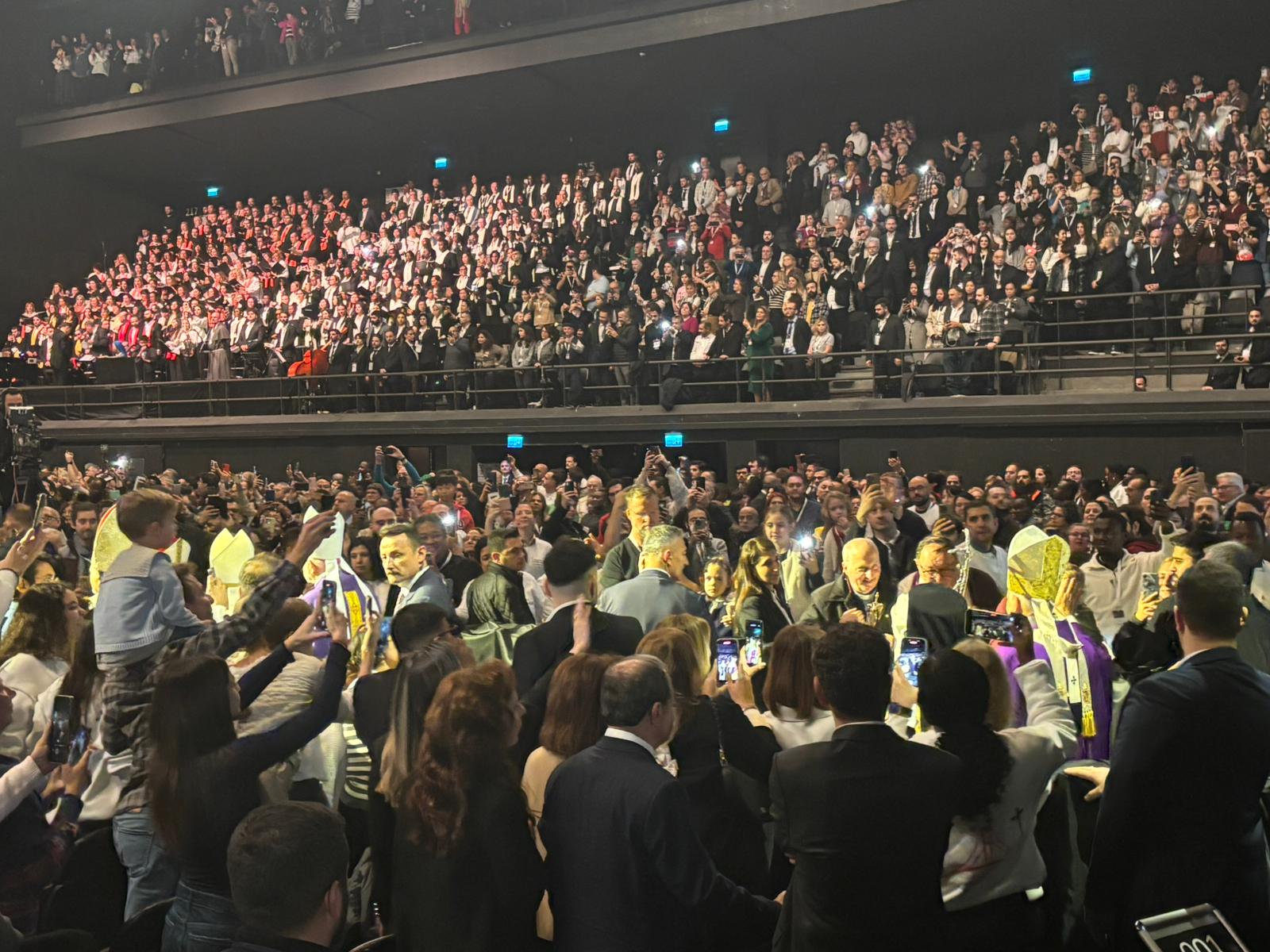 27 Kasım'da Türkiye'ye gelen Papa Leo, 29 Kasım'da Türkiye Hıristiyanları için bir ilki gerçekleştirdi. Papa 14. Leo, Volkswagen Arena’da saat 17.00’de halka açık ayin icra etti. Bu ayin için dünyanın dört bir yanından gelen binlerce insan, sabahın erken saatlerinde Arena’ya girebilmek için yağışlı havaya rağmen uzun süre kapıda bekledi. Saat 14.00’te girişleri açılan alana insan seli aktı. Neredeyse bir ay öncesinde kontenjanları dolan ayine gelen davetliler, üzerlerindeki Papa tişörtleriyle üç katlı salona alındı. Yoğun güvenlik önlemlerinin alındığı ayinde, Ermeni, Süryani, Keldani, Rum ve Latin Katolik ruhaniler ve rahibeler de yer aldı.
