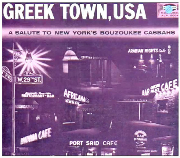 Her şeyiyle ABD’ye taşınan bu eğlence hayatı, özellikle 1950’lerde adeta altın çağını yaşar. 8. Cadde’nin üzerindeki 23. ve 42. Sokaklar arasında konumlanan birçok eğlence mekanı açılır. En çok bilinenleri ise Port Said, Egyptian Gardens, Britania, İstanbul, Ali Baba, Seventh Veil ve Grecian Palace Cafe. Sadece Osmanlı topraklarından gelenlerin değil, zarif New Yorkluların ve Leonard Bernstein, Melvin Douglas, Ann Sheridan, Dave Brubeck, Lennie Tristano, Tony Scott ve Herbie Mann gibi ünlülerin de uğrak mekanları haline gelirler.